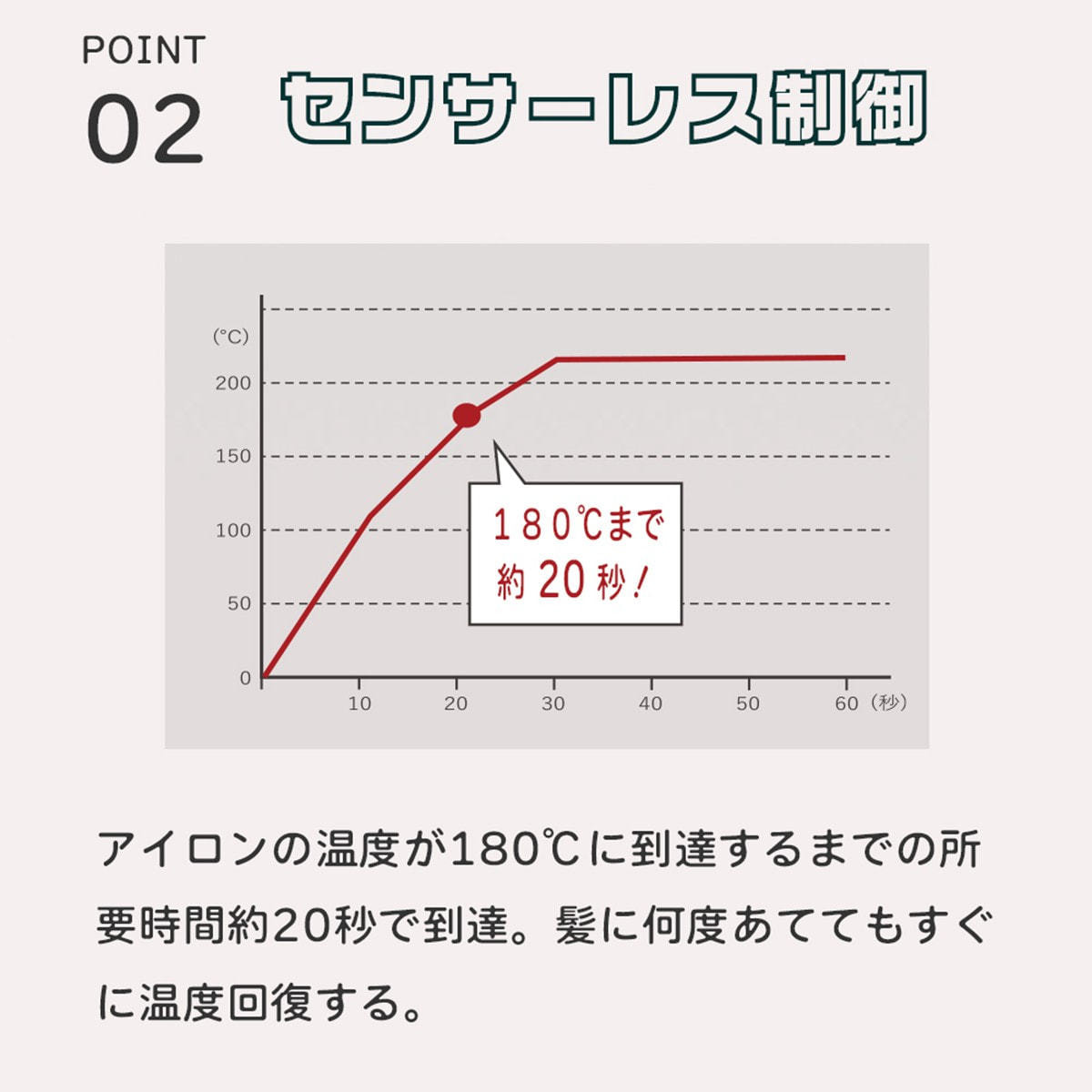 このアイロンは「センサーレス」で、ヒーター自体が精密センサーとなり、百万分率の抵抗温度係数をICが管理するため、温度の上昇を早くすることを可能にしました。そのため、指定温度で精密に制御ができます。
